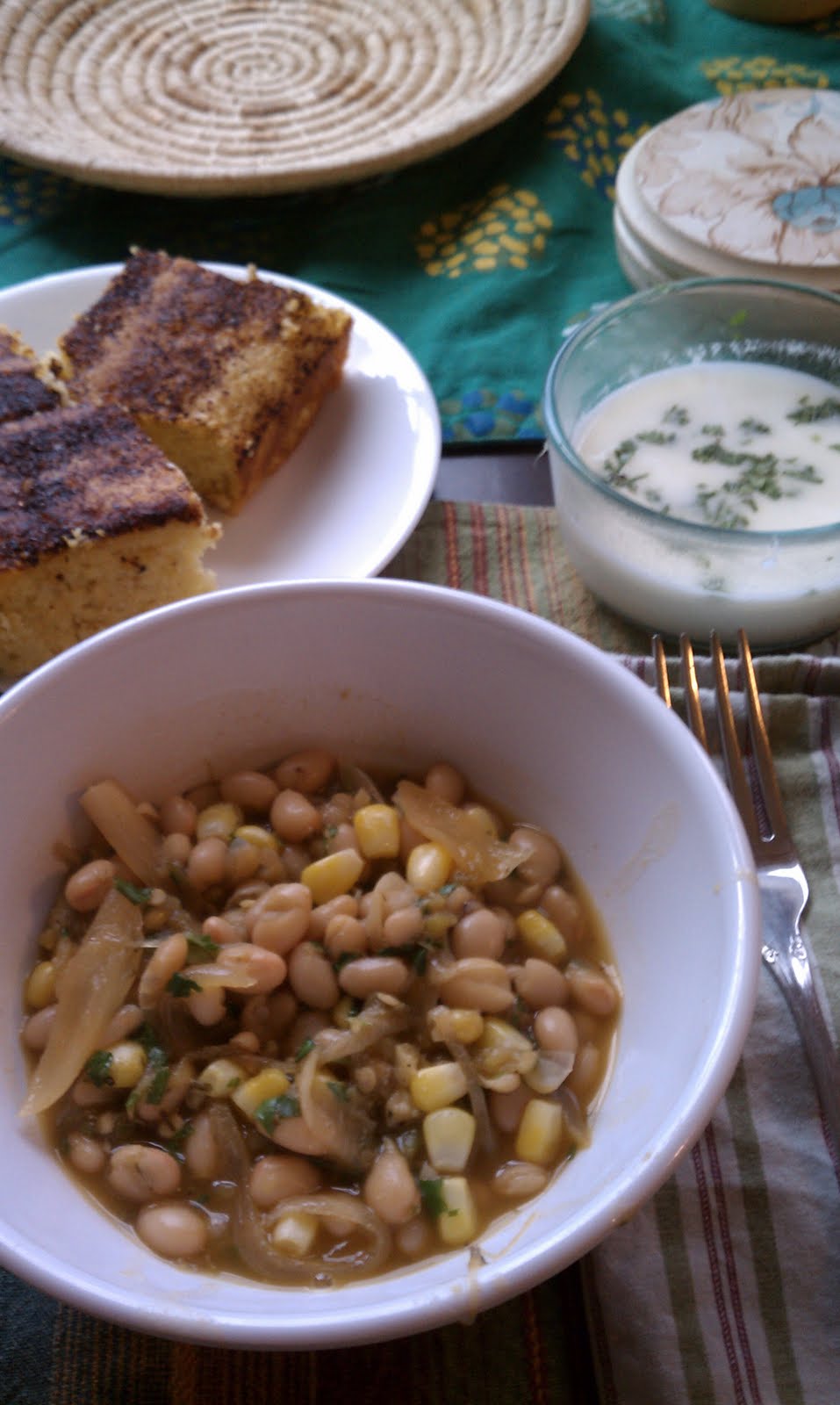 This dish was compliments of my sister, Lisa, who is studying to be a personal chef. I feel so lucky that she likes to test out new recipes on us! This Poblano white bean chili was perfectly hearty with just a hint of heat. She paired it with chili cornbread in the background. Here is the recipe: